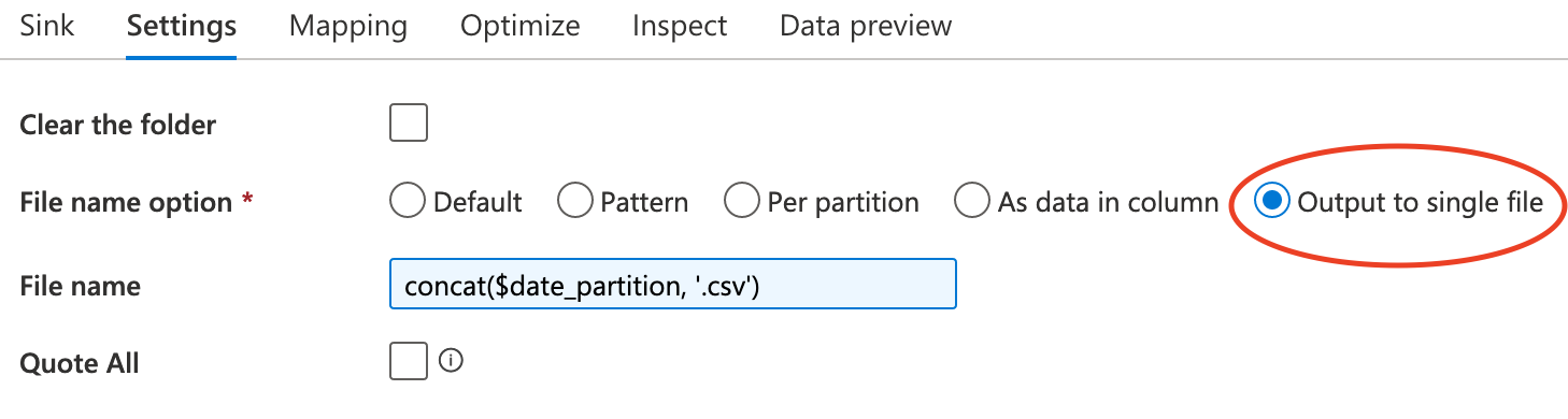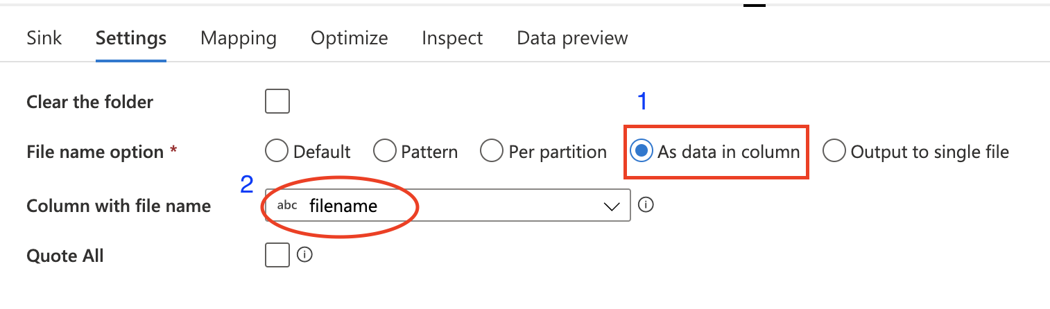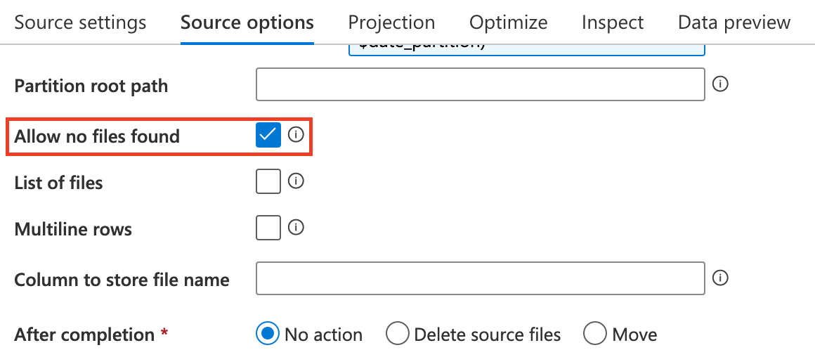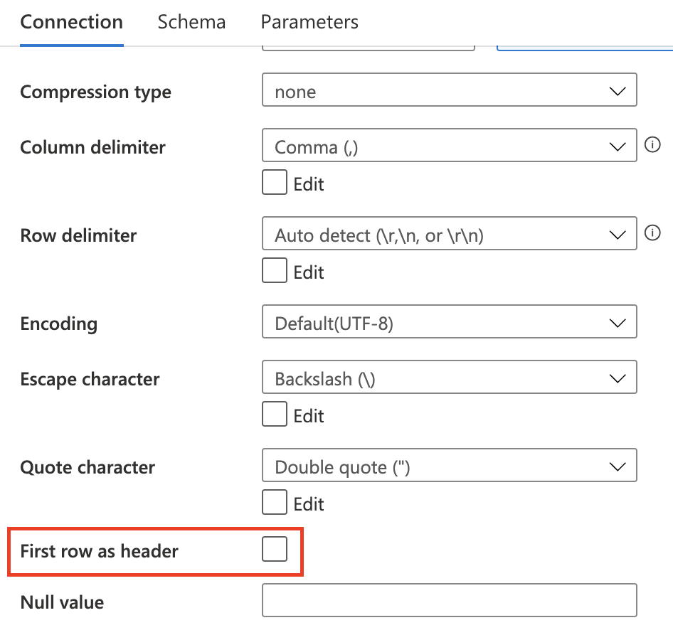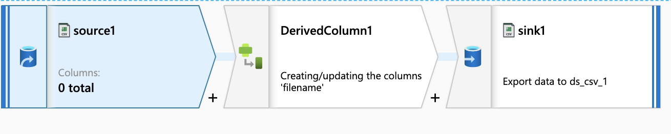 Section titled “DerivedColumn”Because no header is in the dataset, ADF automatically assign a column name to each one. The column name format is _colindex_